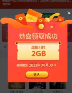领2G流量月包或者领30分钟通话时间